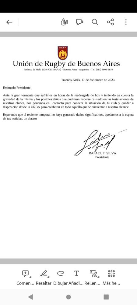 Galería de Imagenes En Pilar, en zona norte, en el Sur; varios clubes no solo de Buenos Aires sino de todo el país sintieron las inclemencias del temporal. La URBA se puso a disposición de los clubes afectados para tratar de dar una ayuda, Mucho esfuerzo de años, destruído en el rugby de clubes por el temporal del último fin de semana. Es por ello que el Presidente Rafael Silva envió un comunicado a los clubes porteños que dice: Estimado presidenteAnte la gran tormenta que sufrimos en la madrugada de hoy y teniendo en cuenta la gravedad de la misma y los posibles daños que pudieron haberse causado e las instalaciones de nuestros clubes nos ponemos en contacto para conocer la situación de tu club y quedar a disposición desde la URBA para colaborar en todo aquello que se encuentre a nuestro alcance.Esperamos que el reciente temporal no haya generado daños significativo, quedamos a la espera de tus noticias. Un abrazo Fotógrafo: Rugby Champagne Fuente: Jorge Ciccodicola Galería de Imagenes