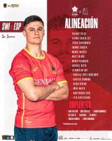 España jugó con Suiza en una sola ocasión. Fue el 11 de mayo de 1993 en Lisboa, en el torneo clasificatorio al campeonato del Mundo 1995. En ese encuentro, Los Leones le ganaron el choque a Suiza por goleada (40-0). Luego el 2