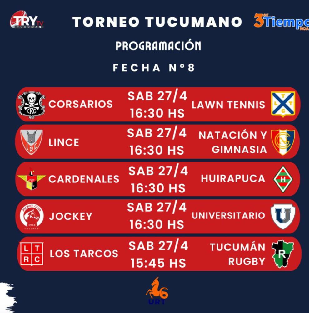 La octava jornada del torneo tucumano tendrá lugar este sábado, dónde los cinco cruces comenzarán a la misma hora