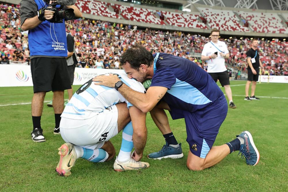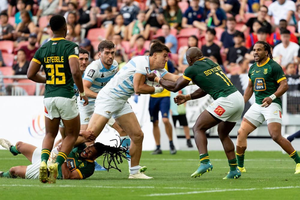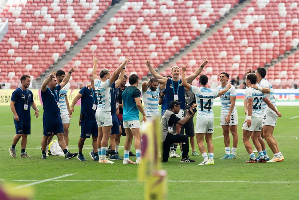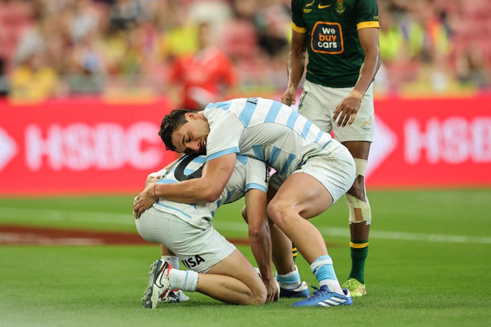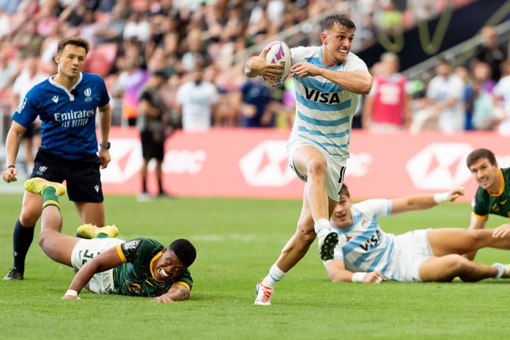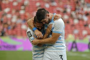 Galería de Imagenes El seleccionado de Santiago Gómez Cora superó a Sudáfrica y consiguió el quinto puesto en la última etapa del Circuito. Con esa victoria se consagró Líder del Circuito Mundial por primera vez El equipo nacional hizo historia. Con una gran remontada venció a Sudáfrica por 14 a 10 y logró los puntos que necesitaba para asegurarse el número uno del Circuito. Las imágenes de un hito histórico para el rugby argentino. Los Pumas 7s viajan a Madrid como los mejores del ranking mundial. Fotógrafo: Bryan Foo / Gaspafotos / Prensa UAR Fuente: RCH Galería de Imagenes