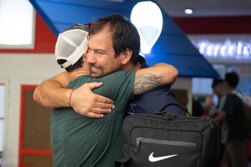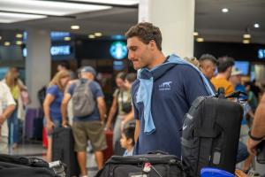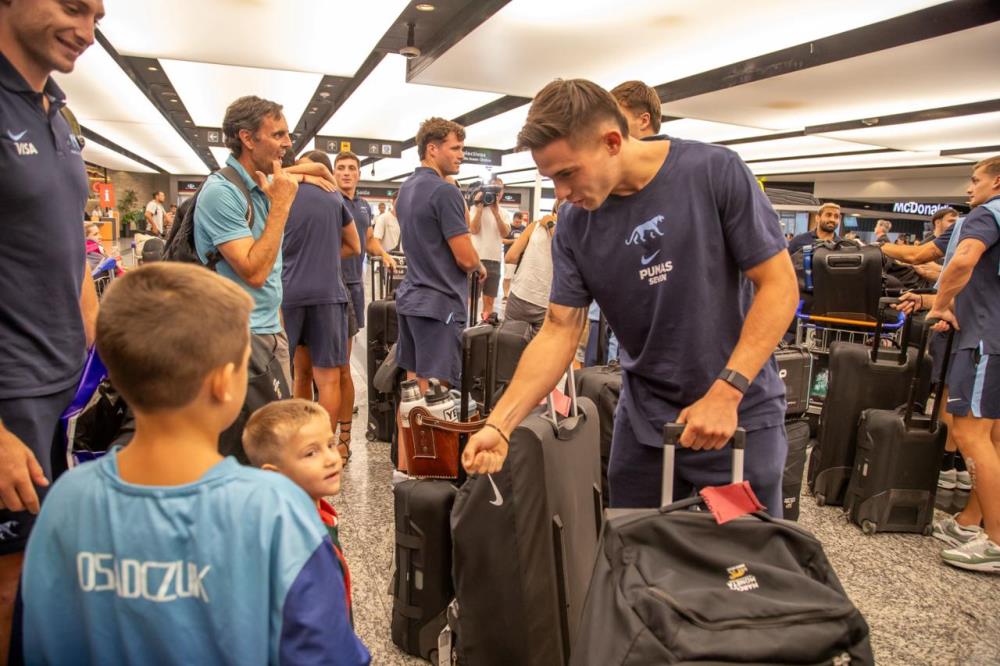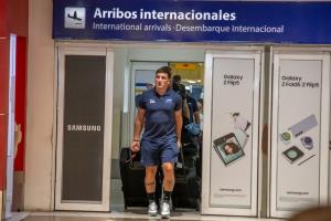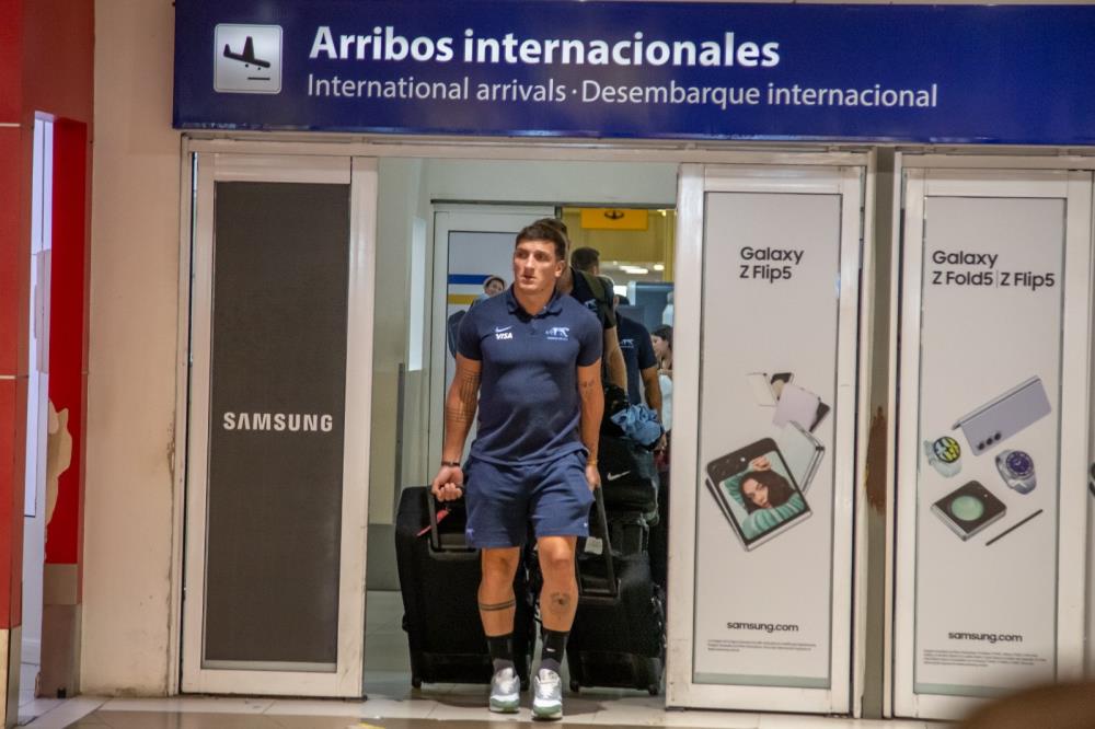 Galería de Imagenes El seleccionado nacional dirigido por Santiago Gomez Cora llegó esta tarde al país luego de consagrarse campeones en el Seven de Australia. A las 14.43 puntual arribó la delegación argentina de Los Pumas 7´s que obtuvo el último fin de semana la medalla de Oro en el Seven de Australia y llegó al Aeropuesto Internacional de Ezeiza en el vuelo número: LA0451 (LATAM) proveniente de Perth, Australia y con la satisfacción del deber cumplido, nada más y nada menos que la obtención de su segunda medalla de oro consecutiva.Con las sonrisas del caso y ante un puñado de argentinos que se hicieron presentes para felicitar a sus ídolos el equipo de Gómez Cora dialogó con la prensa. Fotógrafo: FOTÓGRAFA: Alejandra Krickeberg - Rugby Champagne Fuente: Martina Dargains Galería de Imagenes
