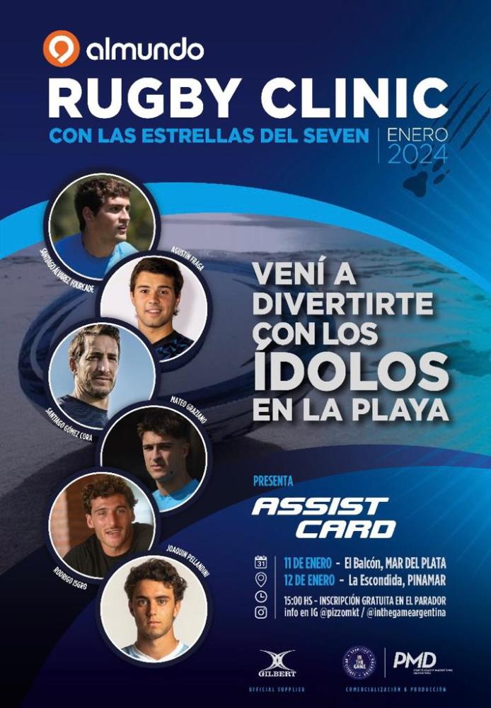 Galería de Imagenes Las tradicionales clínicas de rugby veraniegas se dieron cita en Mar del Plata y Pinamar con algunos de los seleccionados del equipo de Santiago Gómez Cora. Tanto en Mar del Plata como en Pinamar se realizsaron clinicas de rugby seven con algunos integrantes del equipo del seleccionado argentino, Los Pumas Seven que descollan en el Circuito Mundial e irán por las medallas esperadas en los Juegos Olímpicos a realizarse entre Julio y Agosto en Paris. Cientos de chicos de todo el país y de muchos de los 574 clubes de la Argentina, algunos locales y otros de vacaciones por la costa argentina aprovecharon la o casión para participar de las clínicas mencionadas que contaron con el auspicio de Al Mundo.com y Assist Card. Fotógrafo: Gentleza Jose Pizzo Fuente: Jorge Ciccodicola Galería de Imagenes