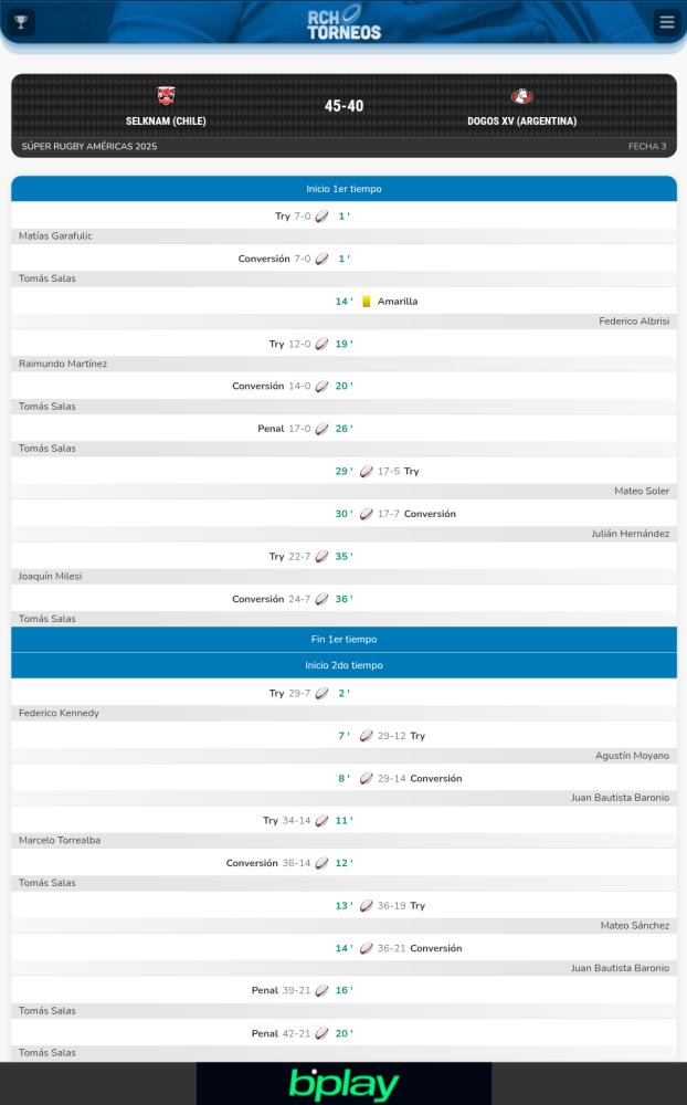 Galería de Imagenes El conjunto chileno superó al último campeón por 45 a 40 en la tercera fecha del Súper Rugby Américas. El fullback Tomás Salas fue la figura del encuentro. Lo mejor del partido: Fotógrafo: Maximiliano Aceiton / Gaspafotos / Super Rugby Ame´ricas Fuente: BRIAN WILLCHAM Galería de Imagenes