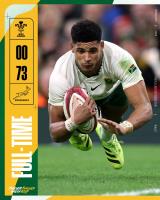 Cuando el primer tiempo finalizó 45 a 0 todos los que asistieron al Estadio de Cardiff sabían que podía ser una goleada histórica la que iba a padecer Gales. Y así lo fue cuando en la segunda parte el quipo dirigido por Rassie Erasmus decretó el 73 a 0 final con once conquistas apoyadas.