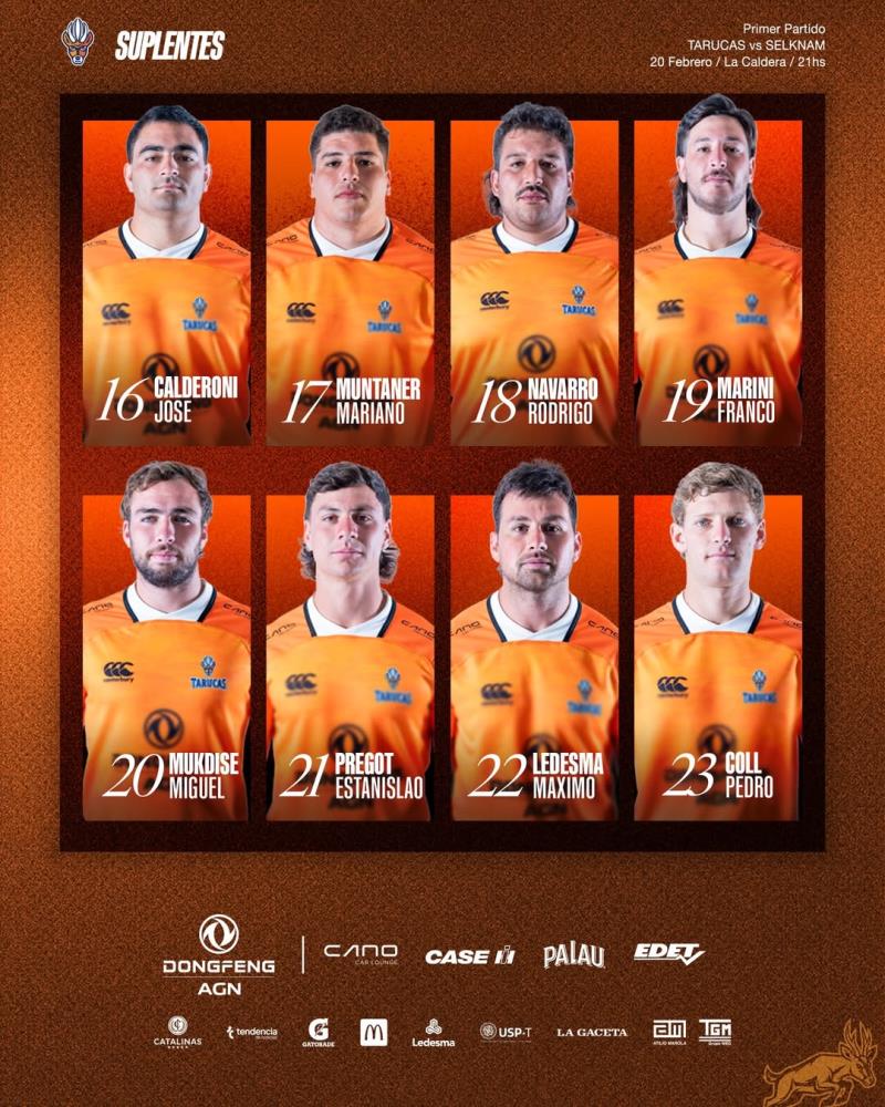 Tarucas: 1. Benjamín Garrido, 2. Raul Guraiib, 3. Francisco Moreno, 4. Ignacio Marquieguez, 5. Luciano Asevedo, 6. Facundo Cardozo, 7. Agustín Sarelli, 8. Thiago Sbrocco, 9. Matías Sauze, 10. Ignacio Cerruti, 11. Mateo Pasquini, 12. Bautista Estofan, 13. Matías Orlando, 14. Tomás Vanni, 15. Tomás Elizalde.