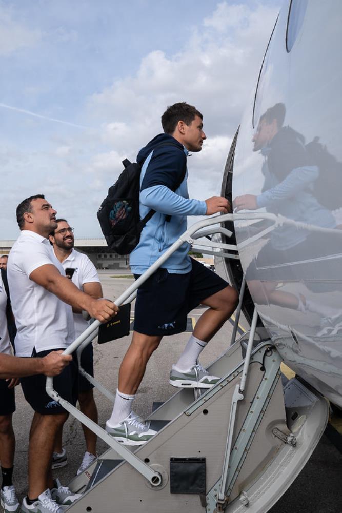 Galería de Imagenes La ilusión que me condena reza la letra y Los Pumas vijaan a jugar sus semifinales. El avión de Marsella a París y las fotos para empezar a palpitar el sueño de pasar la semifinal del viernes ante los All Blacks. El viaje de Marsella luego del triunfo ante Galés de hoy por la mañana para Los Pumas que vn en busca de su mejor clasificación en los Mundiales. Los espera Nueva Zelanda en el Stade de France de Paris. Hacía allá viajan con las valija cargadas de ilusiones hechas sueños que ojalá pueden hacerse realidad. Fotógrafo: UAR/Gaspafotos Fuente: Jorge Ciccodicola Galería de Imagenes