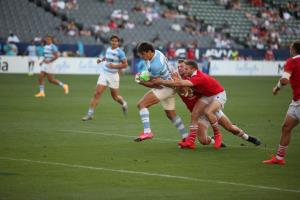 Galería de Imagenes Perdieron por 21 a 14 con el rival del debut, el que le había hecho más fuerza (21-19), quien se tomó la revancha quitándole el invicto. Con un primer tiempo en donde el calor no aflojó, más de 34 grados, Los Pumas Sevens hicieron un gran esfuerzo ante un rival que no les dio respiro y con su sólida defensa impidió cada intento del equipo argentino. El marcador lo abrió Gran Bretaña aunque el empate llegó a través de Marcos Moneta y la conversión de Santiago Mare, Así se fueron al descanso con una igualdad y el tanteador empatado en 7 tantos.Ya en la segunda mitad, el elenco de Santiago Gómez Cora no pudo controlar el balón, y Gran Bretaña tomó el control apoyando un nuevo try en el ingoal argentino. Los Pumas Sevens consiguieron apoyar también a través de González Rizzoni y convertir por Bazán Vélez para igualar en 14. La ventaja y la definición del match llegó a través de un excelente try de Mitchel y allí le quedo a Argentina la última para tratar de igualar. A 18 segundos del final un dudoso tackle alto de Bazán Vélez dejó al elenco nacional con un jugador menos que finalmente aprovechó su rival para hacer correr el reloj y terminar el pleito Gran Bretaña se llevó el match y el invicto argentino con el resultado 21 a 14 y su esperada revancha del partido del debut. Galería de Imagenes