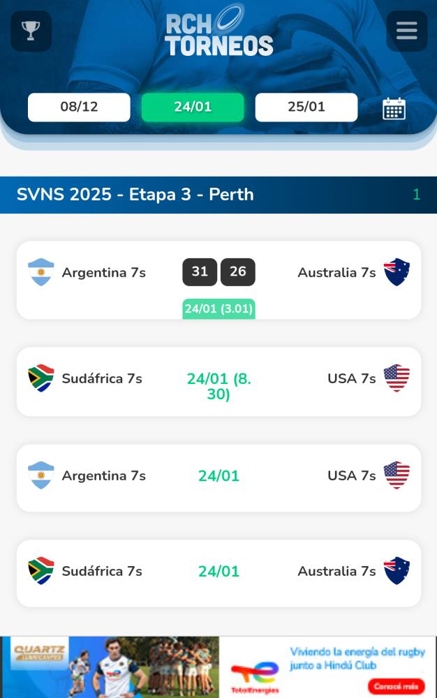 Galería de Imagenes El equipo argentino derrotó en tiempo extra al dueño de casa por 31 a 26 y comenzó de la mejor manera su participación en el grupo A. Argentina jugó un buen primer tiempo y sacó una buena diferencia en los primeros minutos del complemento, pero después se quedó.Su rival no bajó los brazos y con un hombre de más por la amarilla a Santiago Mare logró igualar el score en 26 para llevar el partido al alargue. Los Pumas 7s marcaron primero y se aseguraron el triunfo con la conquista que apoyó Tobías Wade.Los tries argentinos llegaron a través de Wade, en dos oportunidades, Matteo Graziano, Luciano González y Joaquín Pellandini.Pellandini aportó tres conversiones. El jugador formado en Buenos Aires fue una de las figuras junto con el apertura de Alumni, Wade. Fotógrafo: Los Pumas 7s Fuente: BRIAN WILLCHAM Galería de Imagenes