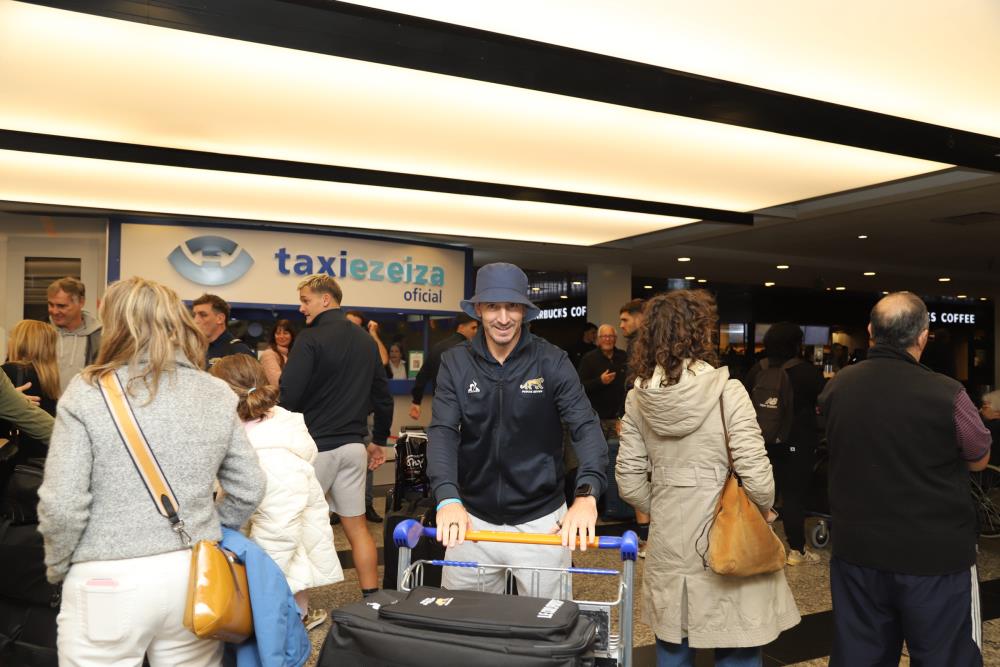 Galería de Imagenes Luego de un extenso viaje que duró más de 40 horas y con el agotamiento normal del mismo, el seleccionado argentino atendió a la prensa en Ezeiza y allí como siempre estuvo RCH para obtener la palabra de los protagonistas y felicitarlos por el logro conseguido. Ahora los espera España para la fase final y luego Francia para los JJOO. Los Pumas seven arribaron esta madrugada a las 6.33 minutos en el vuelo de Lufthansa número LH 510. El plantel que dirige Santiago Gómez Cora tendrá hasta el jueves libre para luego volver a las prácticas con vistas a la etapa final que disputarán entre los ocho mejores seleccionados clasificados en el Seven de Madrid entre el 31 de Mayo y el 2 de Junio próximo.En esa instancia el equipo argentino será cabeza de serie del Grupo1 que además lo integrarán Gran Bretaña, Francia y Australia. Fotógrafo: Alejandra Kirckerberg Fuente: Agustin Brizuela Aasad Galería de Imagenes