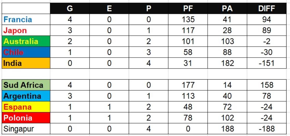 Argentina cayó en el ultimo partido de la segunda jornada y perdió su invicto en el torneo. El resultado adverso de 19 a 14 ante Sudáfrica no fue malo teniendo en cuenta que sus rivales venían en un tren arrollador después de victorias contundentes contra Singapur (72-0), Polonia (57-0) y España (29-0), pero encontraron un duro rival en los Choiques que también llegaban invictos.