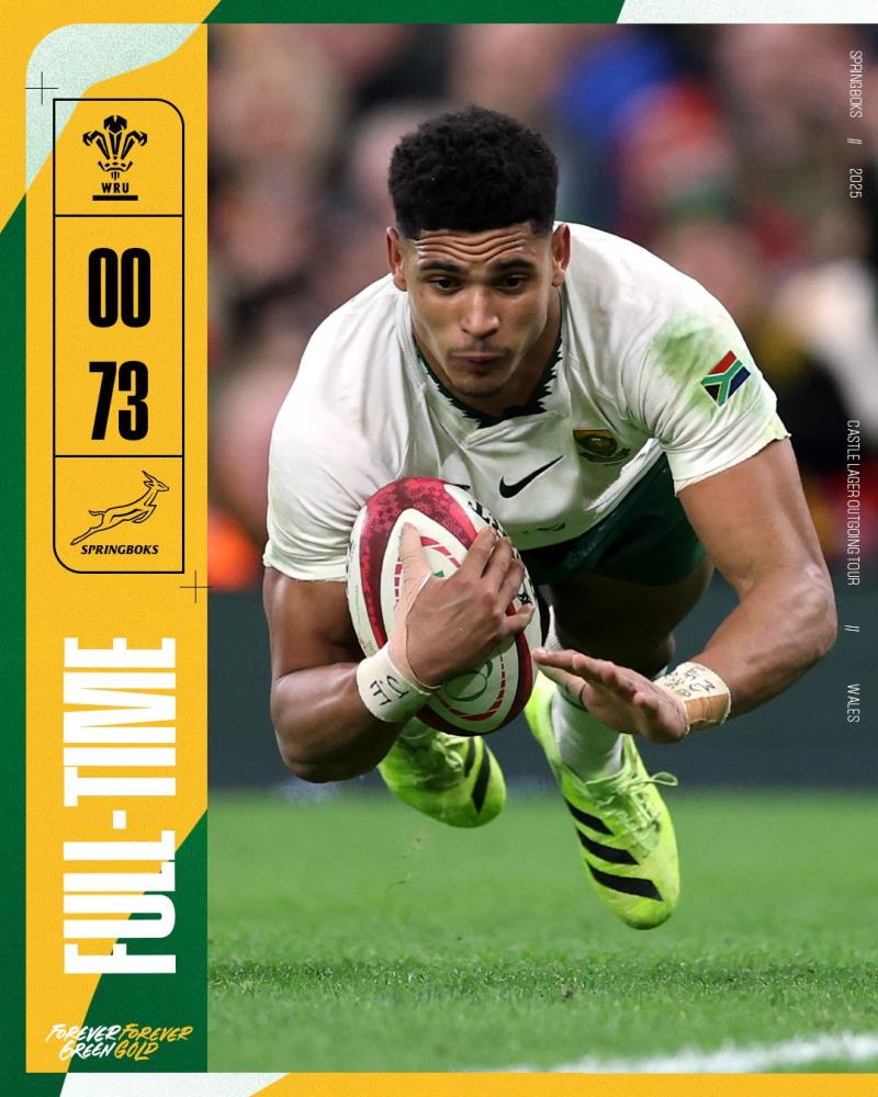 Cuando el primer tiempo finalizó 45 a 0 todos los que asistieron al Estadio de Cardiff sabían que podía ser una goleada histórica la que iba a padecer Gales. Y así lo fue cuando en la segunda parte el quipo dirigido por Rassie Erasmus decretó el 73 a 0 final con once conquistas apoyadas.