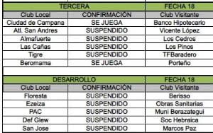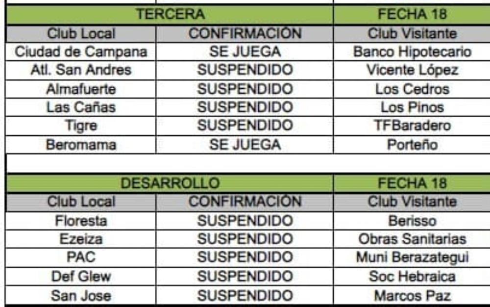 Ante tantos no hay, los propios clubes se pusieron de acuerdo entre ellos y les informan a la URBA o a la prensa que no pueden jugar en sus propias canchas realmente anegadas, y que prefieren suspenderlo.