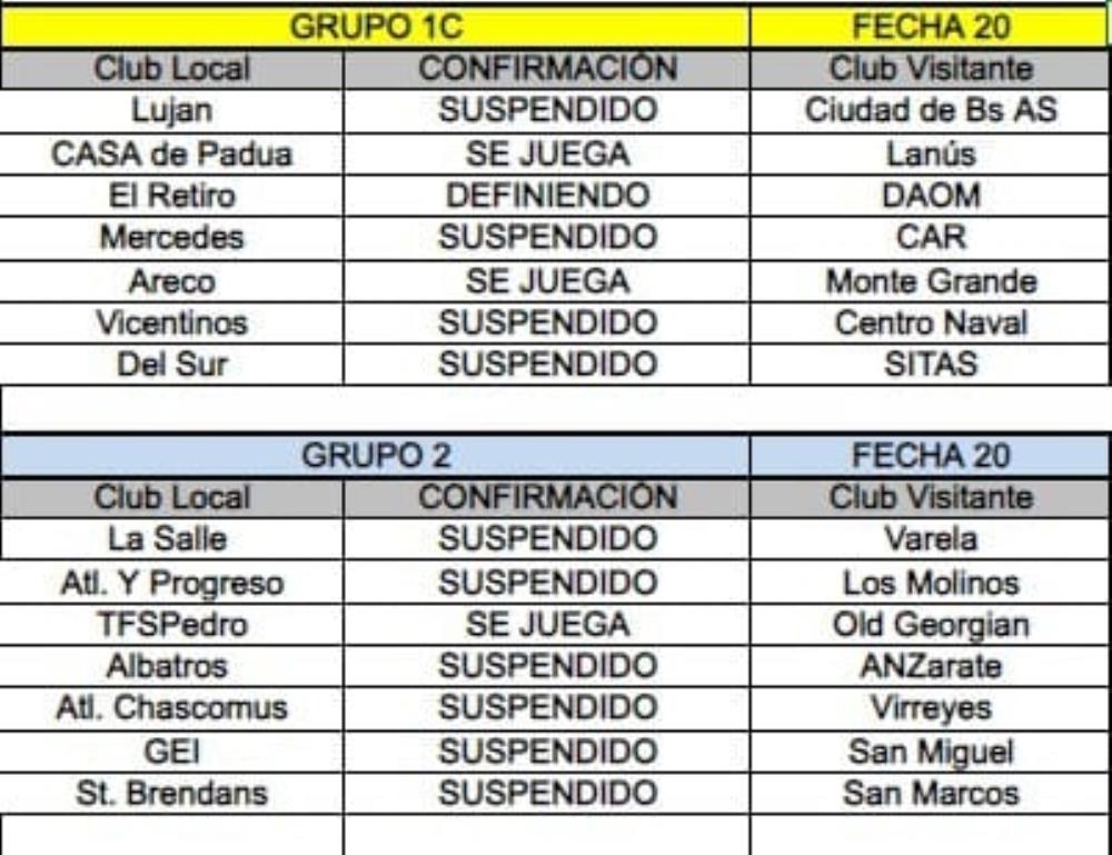 En el rugby porteño, siendo las 12.30hs acabamos de confirmar con PRENSA URBA, que todavia hay partidos que no se saben si se jugarán o no.